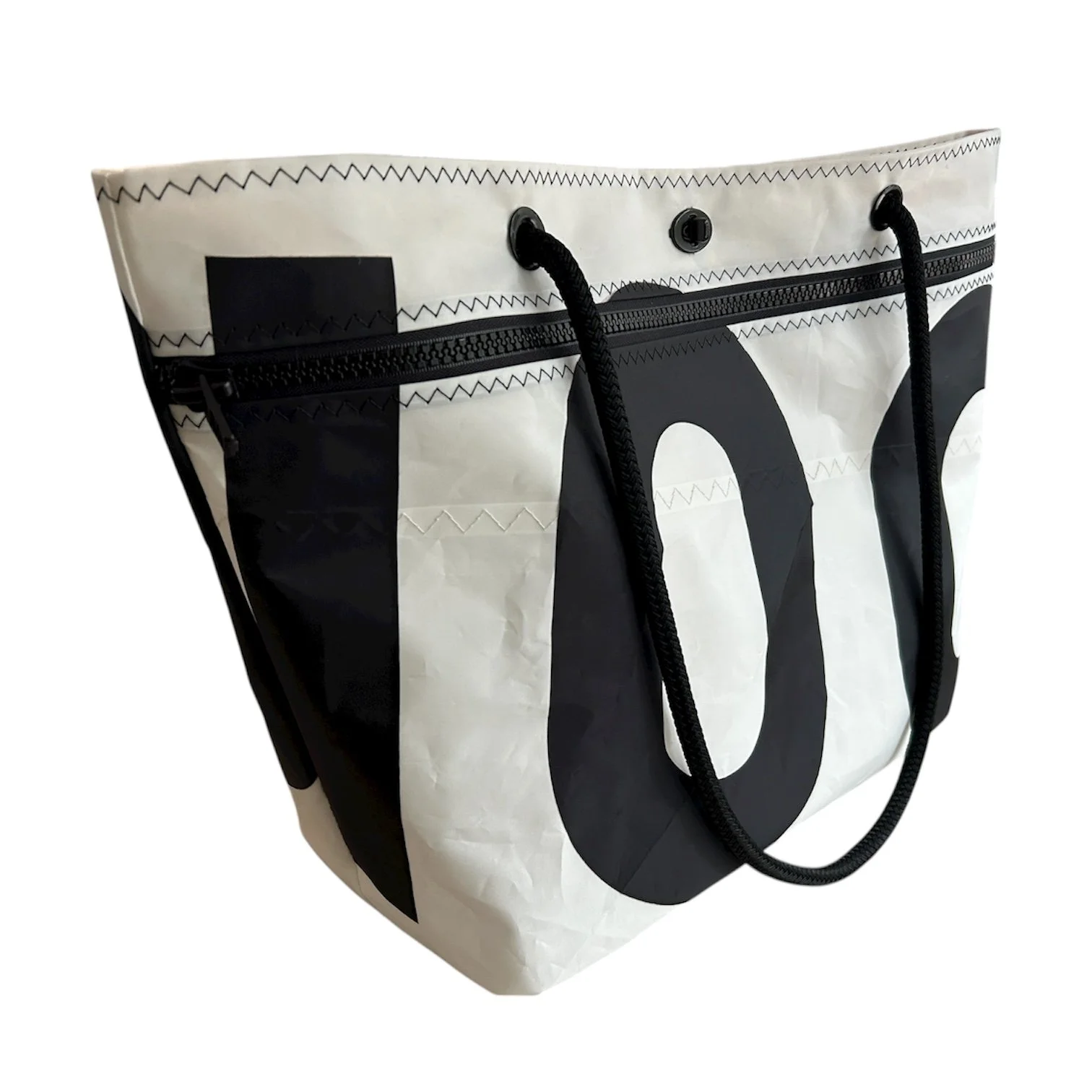 Large Tote – Recycled White Dacron Sailcloth with Original Sail Number “100”