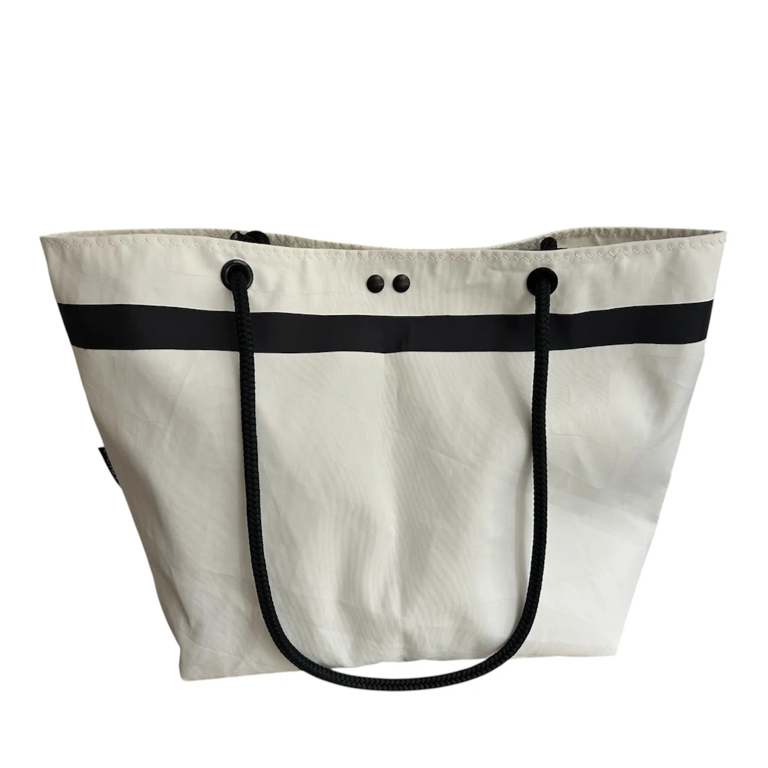 Note: Each LBIOne Large Tote is handcrafted from authentic recycled sailcloth and may include natural signs of wear, stitching lines, or unique sail markings—details that reflect its former life on the water and make your bag truly one of a kind.